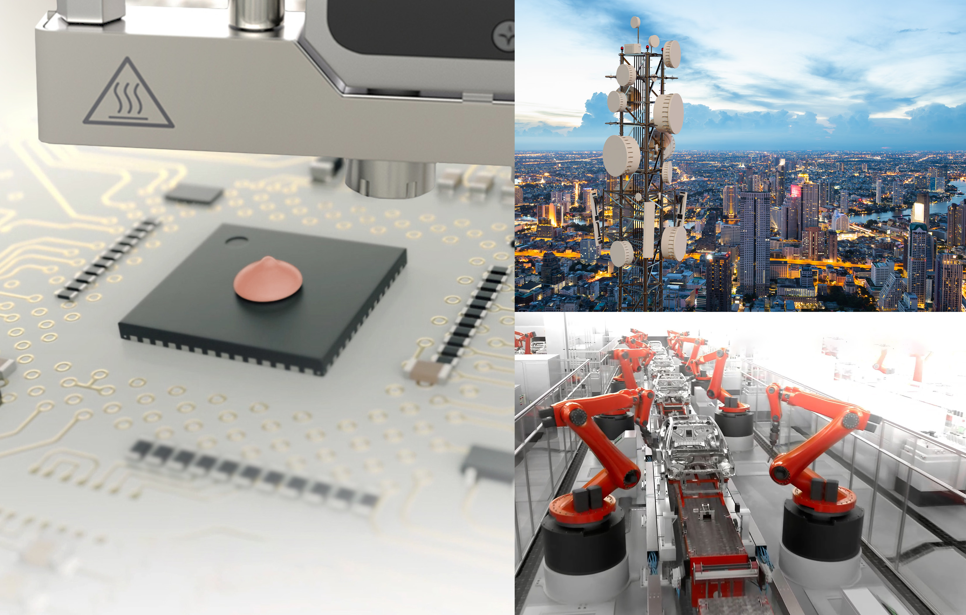 According to IDTechEx Senior Technology Analyst, Dr. James Edmondson, process-friendly, high thermal conductivity materials are a necessity to bridge production and performance expectations: “The push toward digital, data-driven control across market sectors has given rise to high power density component designs that can deliver exceptional processing speeds,” he says. “This includes many applications – from 5G baseband units to small cells and Wi-Fi 6E devices in urban areas to EV mobility to AI and robotic technologies—and they all require reliable thermal management solutions that are rugged enough to withstand dynamic environments, positioning uncertainty and high wattages. Our market research confirms the need for dispensable, high thermal conductivity TIMs that can meet today’s performance and volume processing demands and thermal gels have proven to be an effective solution.”